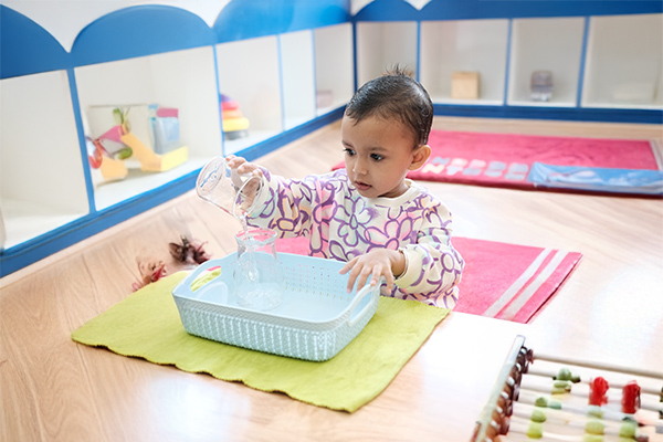 The Montessori approach encourages children to explore, learn, and develop at their own pace. It fosters independence, creativity, and critical thinking through hands-on materials and experiential activities.